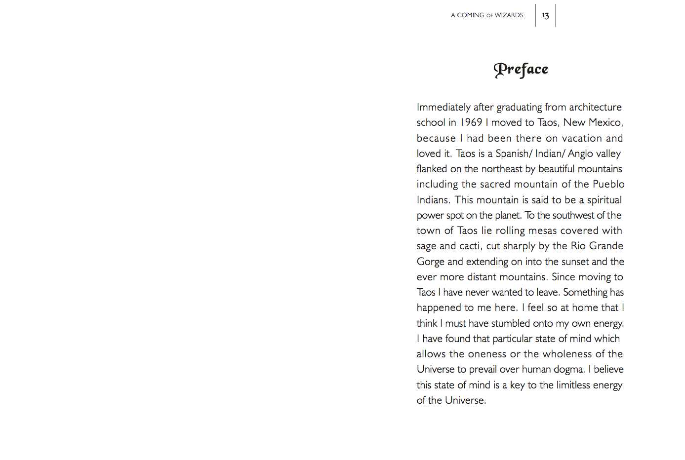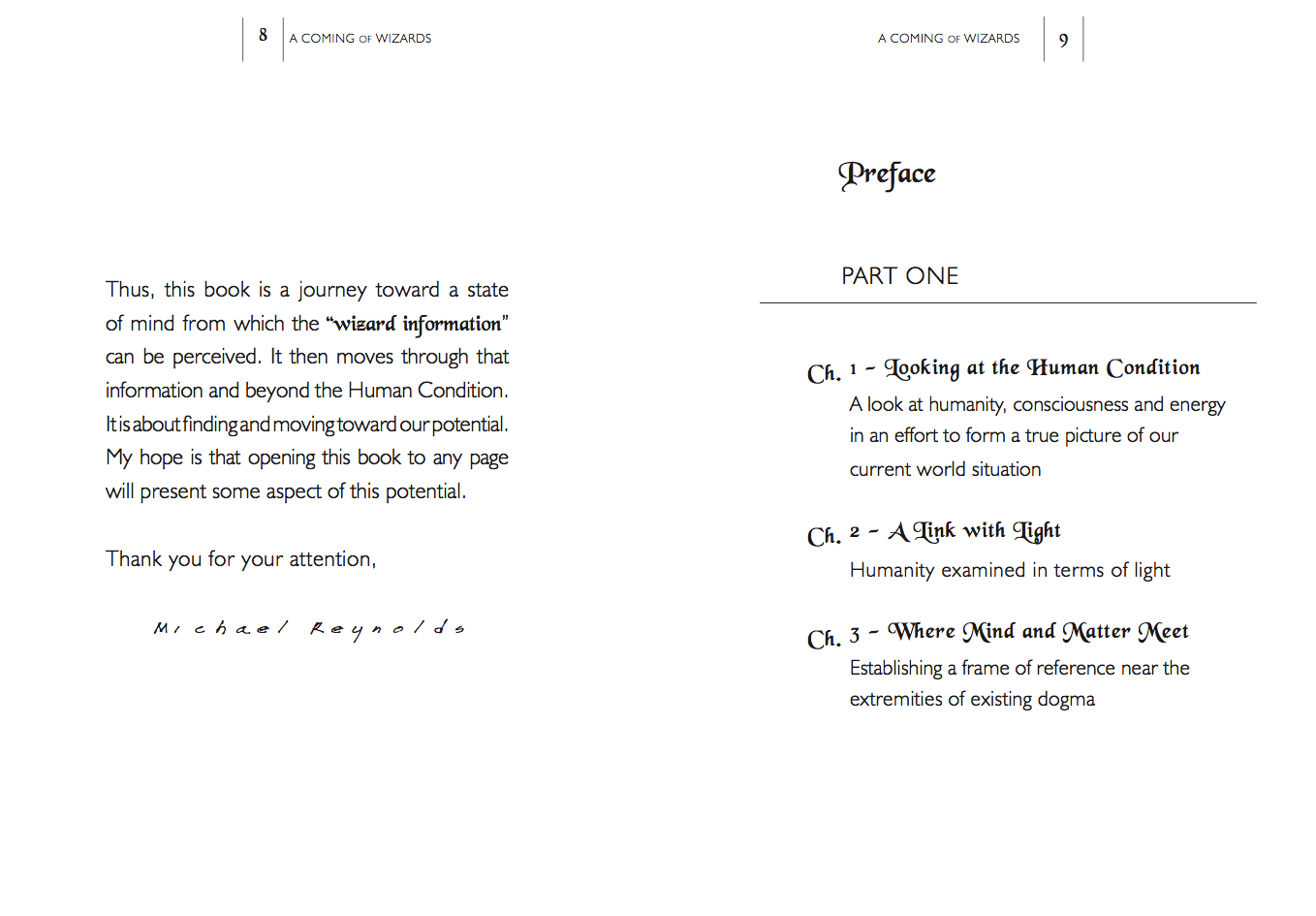 A Coming of Wizards, originally published in 1989 by Michael Reynolds, is a book that explores concepts of sustainable living, self-sufficiency, and the connection between humans and their environment. The book is part philosophical treatise, part practical guide, focusing on how one can live in harmony with the natural world through thoughtful design and architecture, particularly through the use of Earthship biotecture.