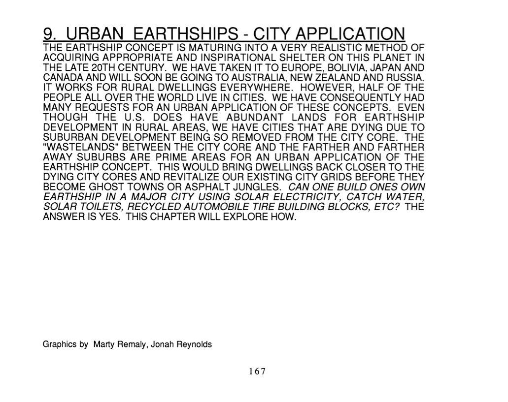 "This guy is awesome. I love his ideas and energy. All his books are good. One complaint about his buidling methods is that he uses too much material. His houses cost about the same as a convenional house. So, if money and buidling materials must be wasted to buy or build one of these houses, the ecological element is subtracted from. But, over all, if these homes funtion the way he claims they do, they are a blessing to an overburdened earth and overwhelmed humanity."