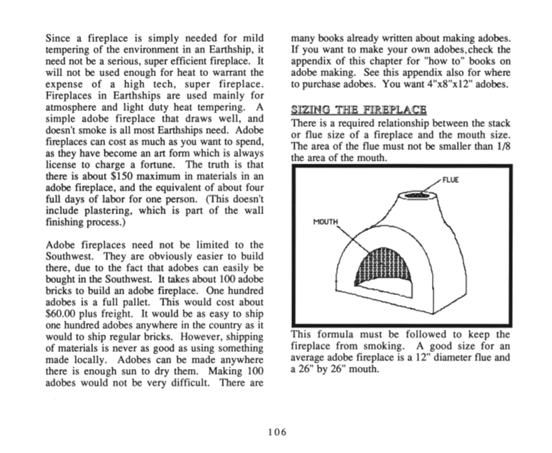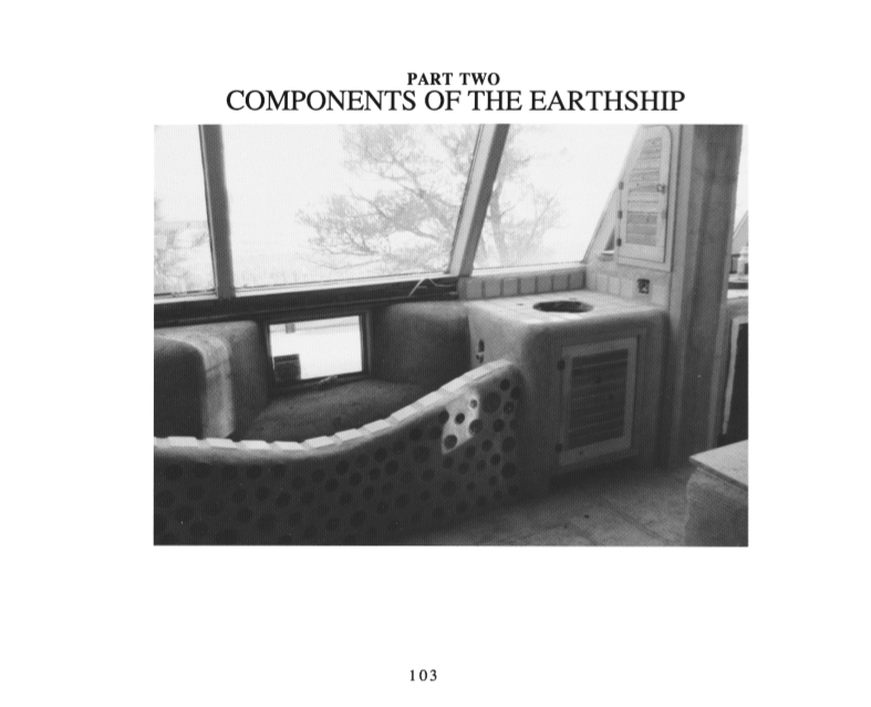 Although earthships can be designed and built to not require supplementary heating, there is nevertheless, a great appeal to a fireplace, and Reynolds takes the readers step-by-step through the process of building a charming adobe fireplace.